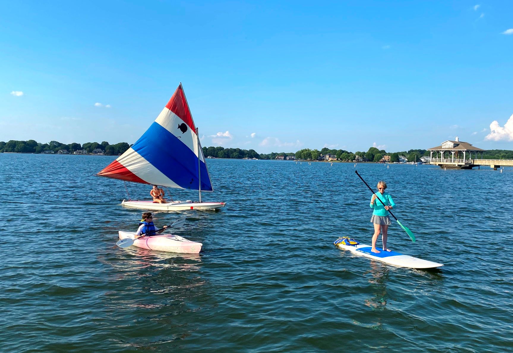 Tuesday Fun Day is a supervised sailing, kayaking, and paddleboarding activity for adults, parents and children who are competent swimmers. It is a great way to get involved with other members, enjoy Lake Norman, and improve skills without being competitive. In order to accommodate our members, there is a limit of six member invited guests total per Tuesday evening. Tuesday Fun Days are set up in a follow the leader format to maximize fun and learning. Each evening will end with a potluck meal.